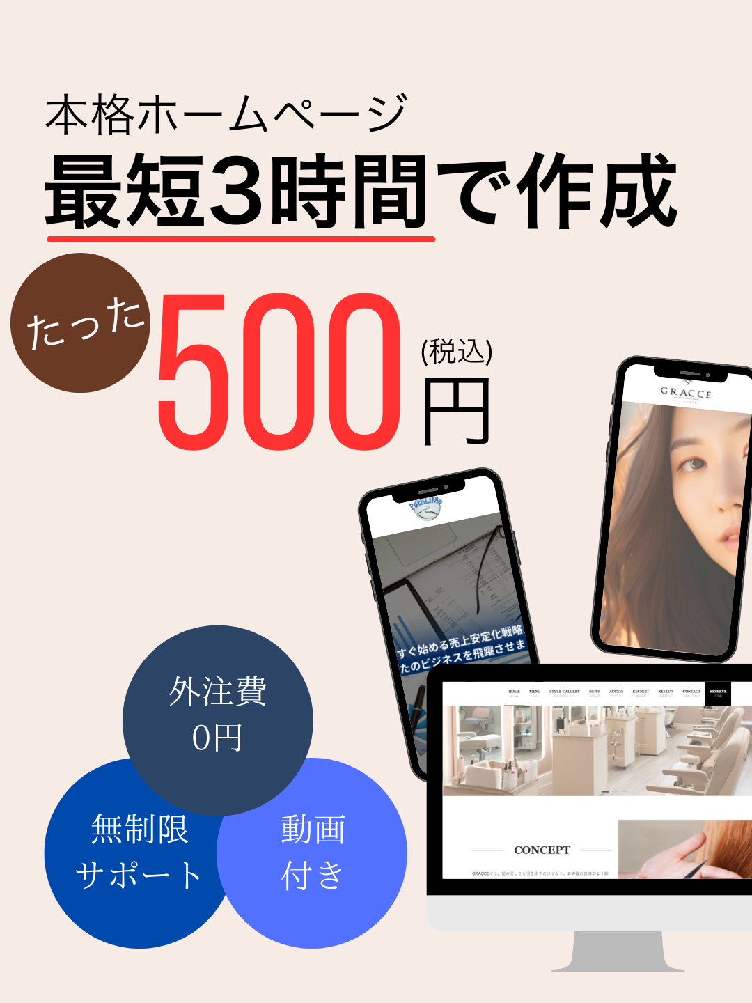 「ホームページを作りたいけど専門知識も時間もお金もない」