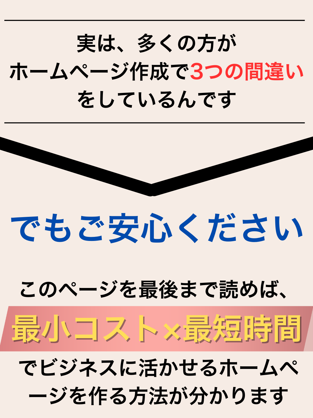 成果を出すホームページの本質は「デザイン」ではなく「情報設計」です。どんなにおしゃれなデザインでも、訪問者が欲しい情報にたどり着けなければ意味がありませんだからといってデザインが必要ないということではありません。自身のサービスやブランドをしっかり反映させたデザインで訪問者が見やすいよう情報設計をすることです。